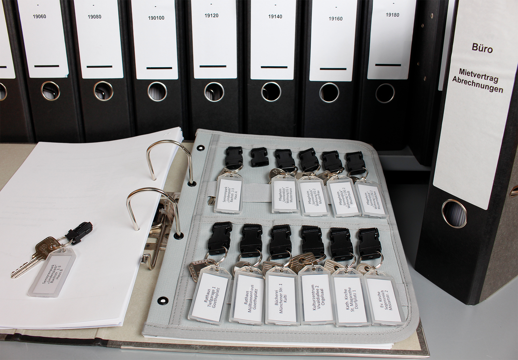 am KEYBOARD an. Das spart Platz und ermöglicht bei Bedarf auch mehrere Schlüsselboards in einem Ordner zu lagern.