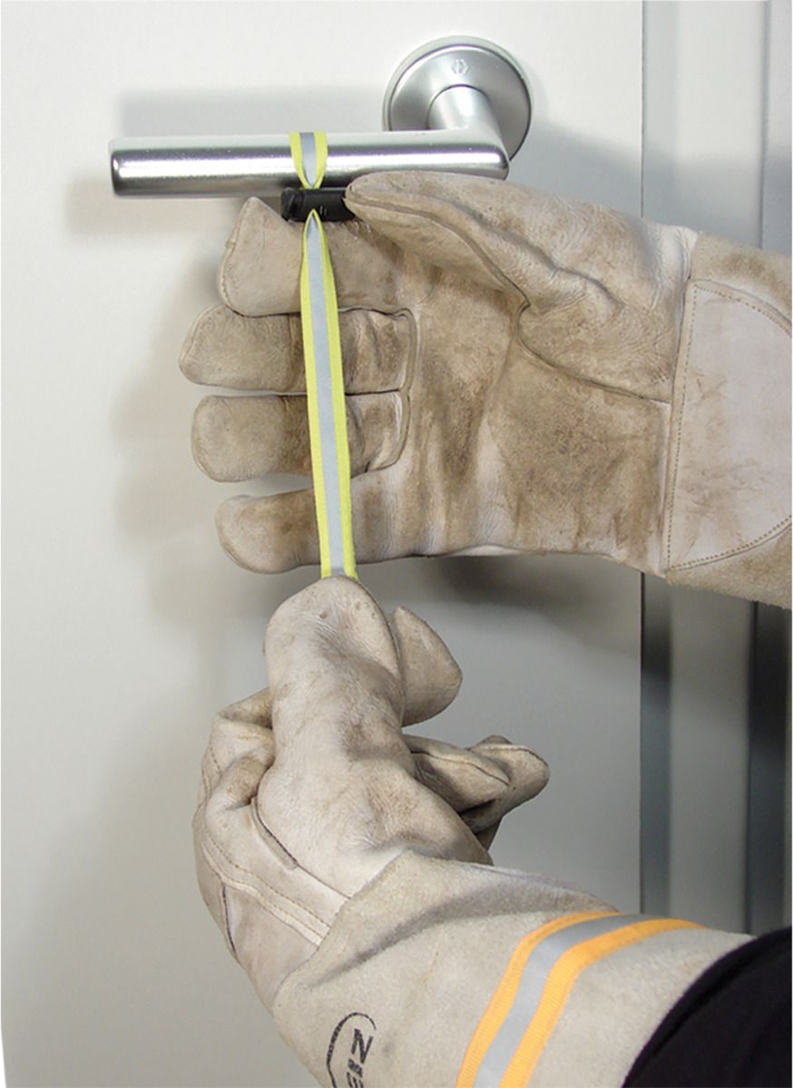 Zur Markierung durchsuchter Räume oder Gänge. Der 30cm lange CHECKER STRAP lässt sich dank des Kordelstoppers ohne großes Knoten an nahezu jedem Türgriff-Typ schnell befestigen und bietet selbst bei Überdruckbelüftung 100% sicheren Halt. Das 12 mm breite Band ist durch die Farbe signalgelb und den 8 mm durchlaufenden Reflexstreifen auch in verrauchten Räumen gut erkennbar.