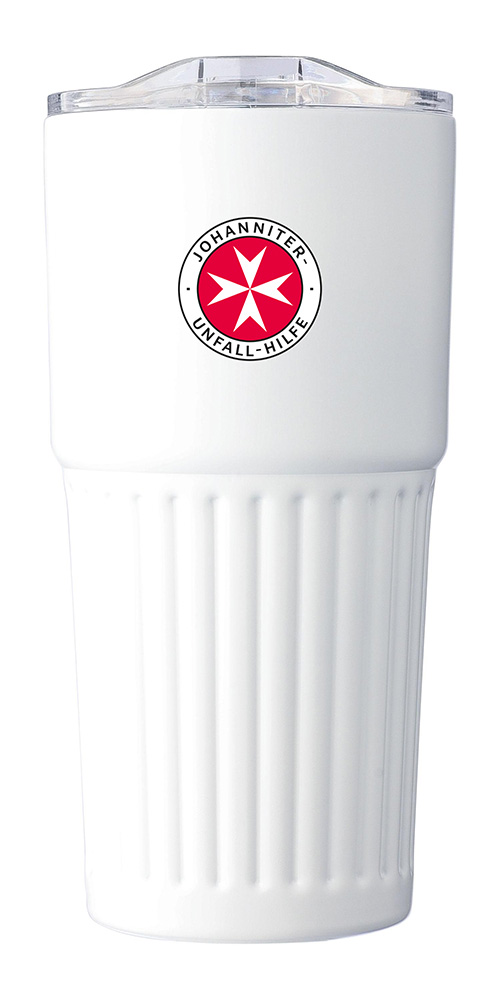 Der Becher verfügt über ein geriffeltes Griffdesign.