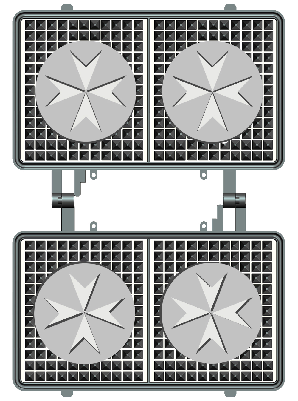 Material: Kunststoffgehäuse, Metallplatten mit Antihaft-Beschichtung