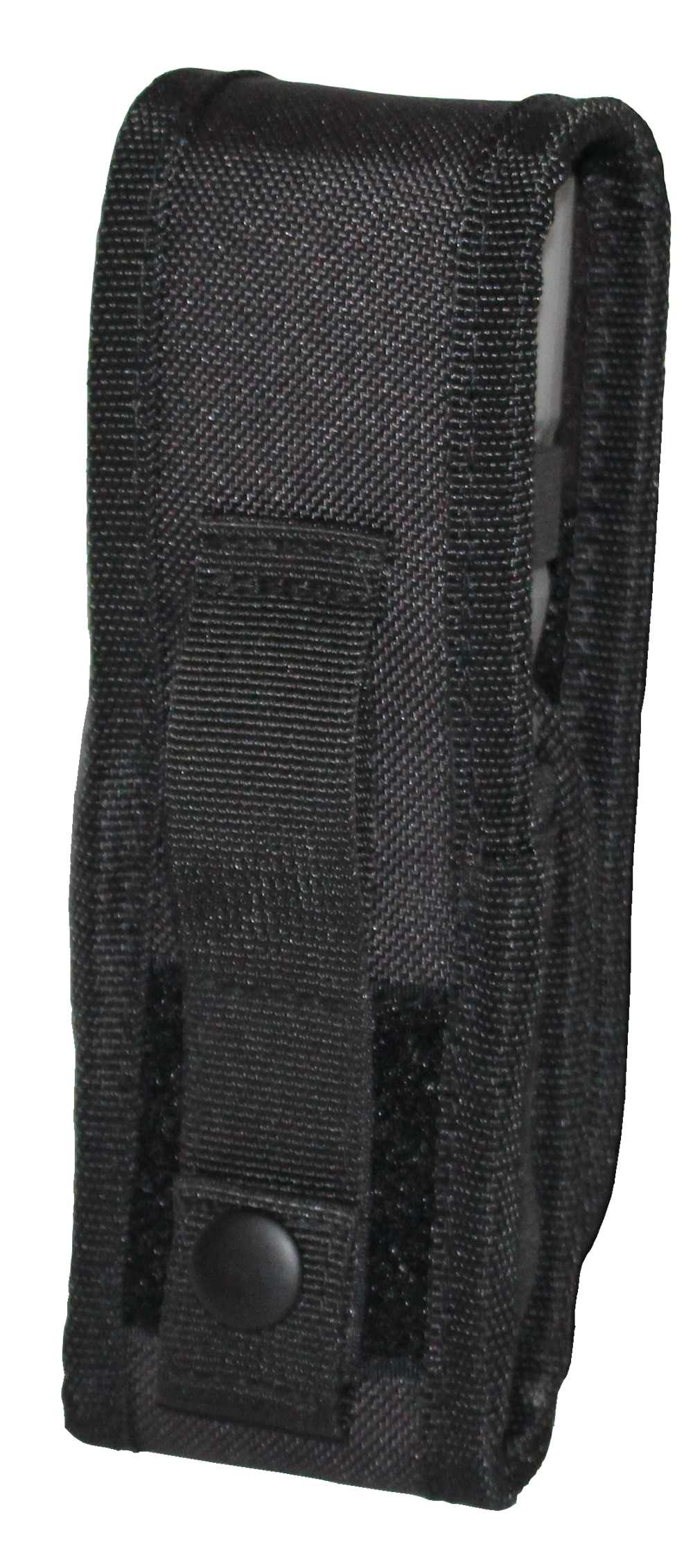 Das Holster wird mit der 25mm breiten Schlaufe - gesichert durch einen Metalldruckknopf - an Koppel, Gürtel oder Weste befestigt.