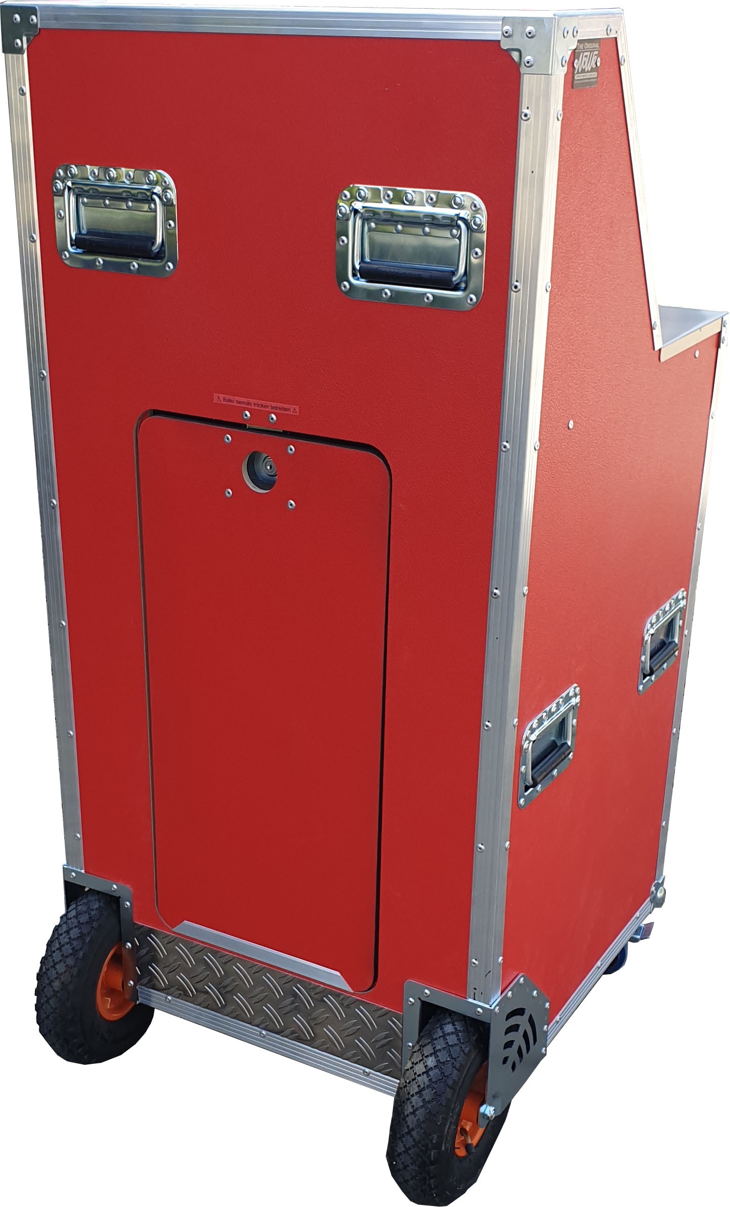 Durch die Luftreifen kann das Case wie eine Sackkarre auch durch unwegsames Gelände gefahren werden.