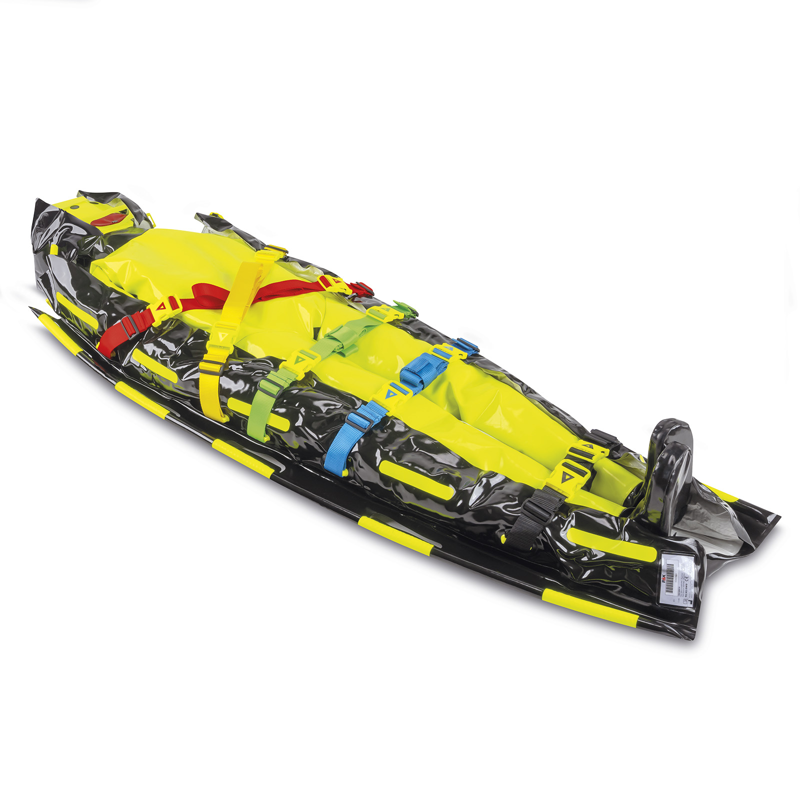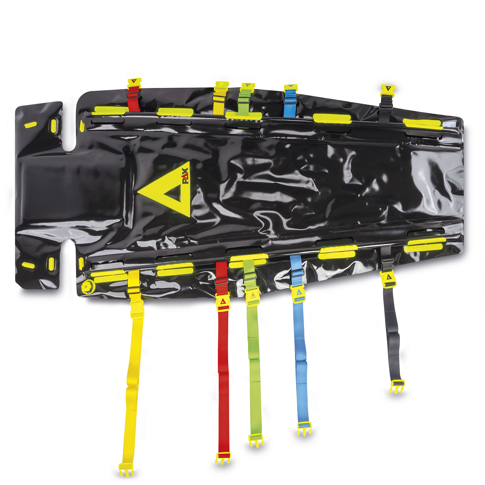 Die PAX Vakuummatratze - Ergo-Mat ist das Flaggschiff der neuen PAX Vakuummatratzen und weist neben dem anatomischen V-Zuschnitt ein angesetztes Kopfteil auf, das die Nutzung der Patientengurte der Fahrzeugtrage problemlos ermöglicht. Sie verfügt über farblich codierte Fixiergurte mit tagesleuchtgelben Steckschnallen, die den Gurten am PAX Logo farblich zugeordnet sind, sowie eine individuell nutzbare Gurtverlängerung. Die Gurt- und Trageschlaufenösen sind für die bessere Reinigung von innen eingeschweißt, um eine glatte Oberfläche zu gewährleisteten. Das Material der Tragegriffe ist komplett geschlossenporig. Die Steckschnallen sind seitlich der Matratze angebracht, um Druckstellen am Patienten zu vermeiden.