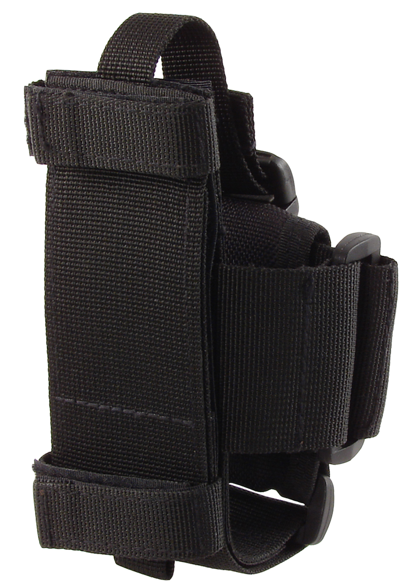 Das Holster lässt sich mit einer breiten Vario-Schlaufe sicher an Koppel oder Gürtel befestigen. Mit den quer laufenden zusätzlichen Klettbändern wird das Holster z.B. an Rucksack-Schultergurten oder Klettergurt befestigt.