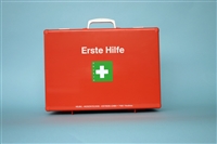 Koffer aus Kunststoff, orange, mit Drehverschlüssen, 8 großen und 10 kleinen Trennstegen, 2 Klarsichtabtrennungen, 1 Wandhalterung und 2 Arretierungen, die den Koffer an der Wand im 90°-Winkel halten, leer. Maße: 44 x 33,5 x 16 cm (B x H x T).