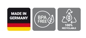 Besonders langlebig gefertigt und spülmaschinengeeignet. Der Verschluss ist auslaufsicher und für kohlensäurehaltige