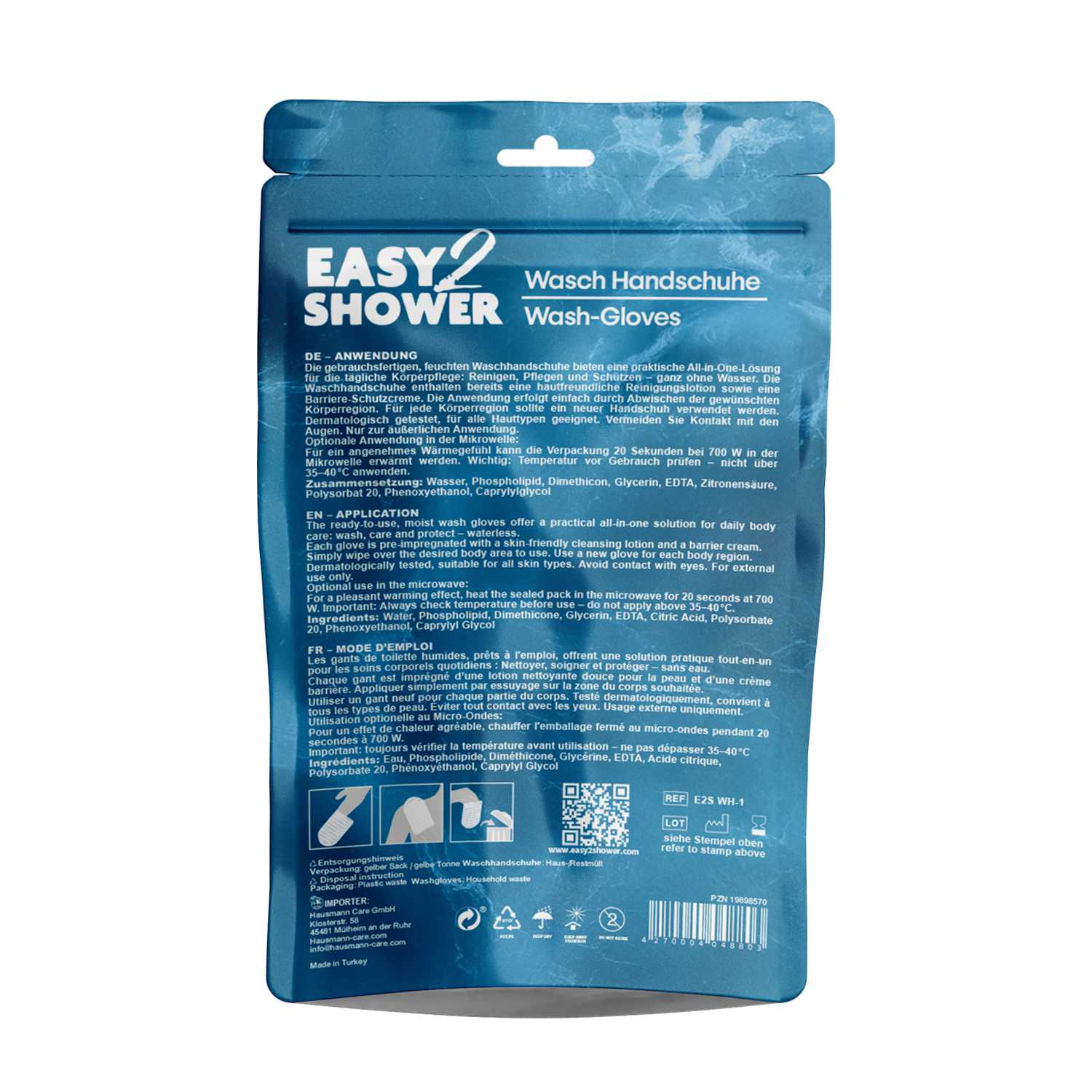 Reinigen, Pflegen, Schützen. Die Waschhandschuhe dienen zur wasserlosen
