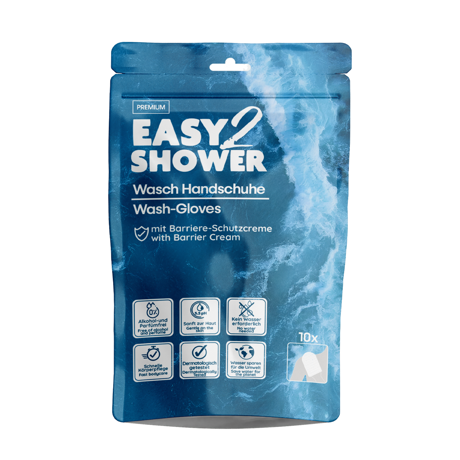 Inhalt: 10 Stück Waschhandschuhe im wiederverschließbaren Beutel.