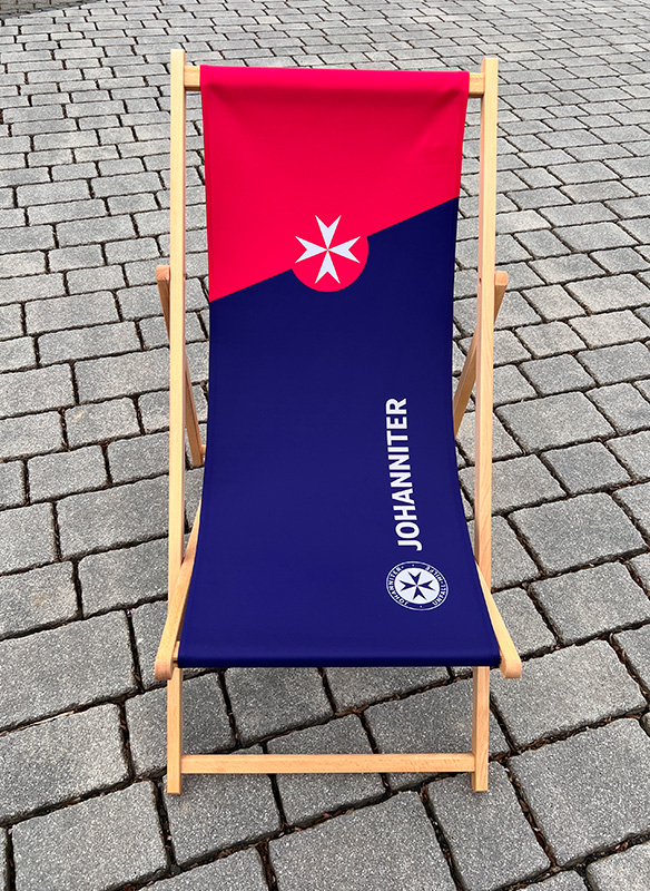 2er-Set klappbare Liegestühle aus Buchenholz mit auswechselbarem Bezug.
