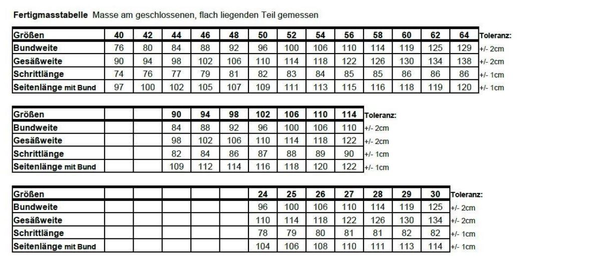 Mischgewebe 65% Polyester, 35% Baumwollem, 2 Beuteltaschen, 2 Schenkeltaschen, 1 Gesäßtasche.